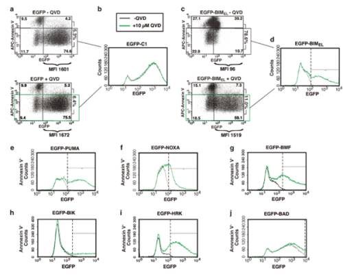 通过流式细胞定量测量肿瘤细胞对仅含 BH3 结构域蛋白质耐受的示意图