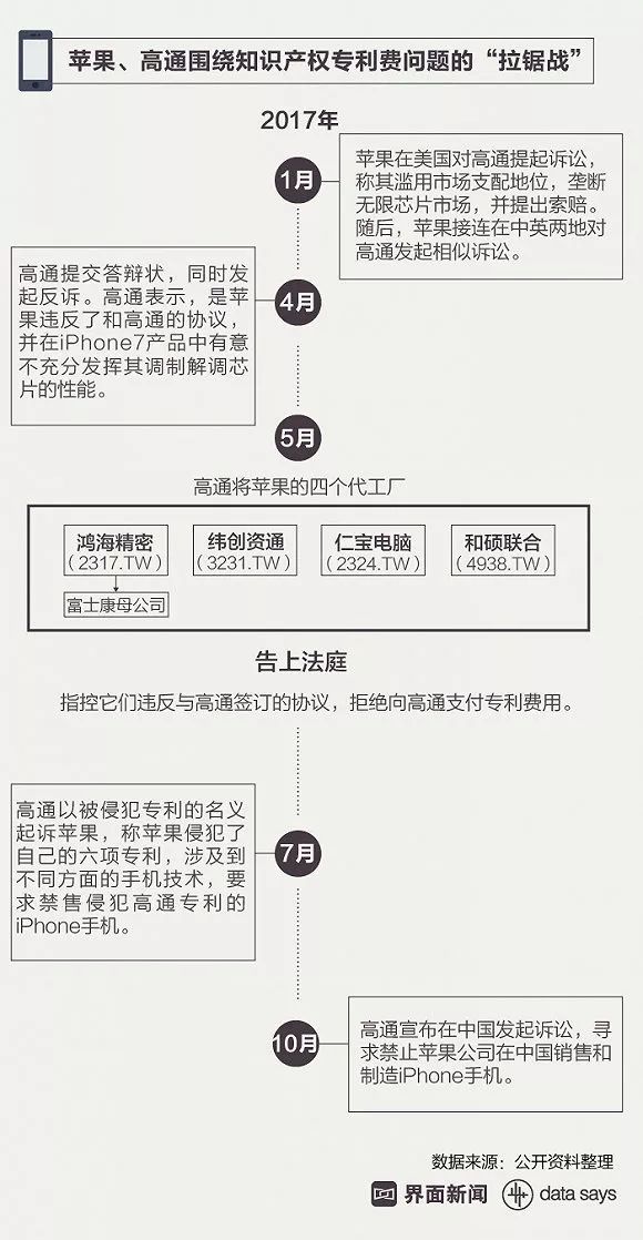 图 | 高通和苹果的专利诉讼时间线,图源界面新闻