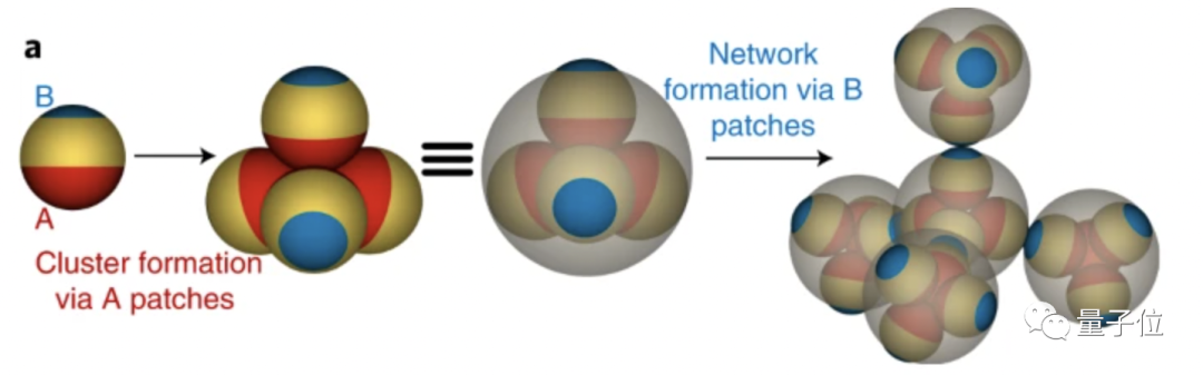 其中能量学用来促进形成离散的四面体簇,由强A-A之间的相互作用驱动,然后通过较弱的B-B相互作用形成四面体网络流体。