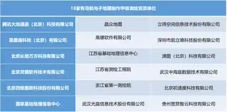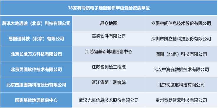 所以,在国内,目前只有18家获得导航电子地图制作甲级资质的企业。