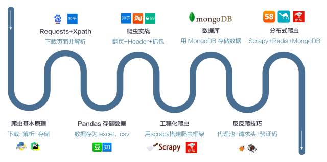 DC学院准备了一门非常系统的爬虫课程,除了为你提供一条清晰、无痛的学习路径,我们甄选了最实用的学习资源以及庞大的主流爬虫案例库。即便是零基础,经过短时间的学习,也能很好地掌握爬虫这个技能,获取你想得到的数据。