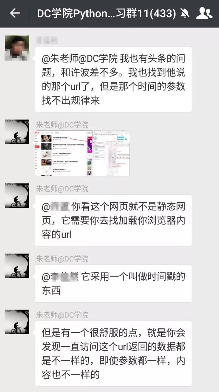 除了经验丰富、带你一步步实操的课程老师之外,DC学院还建立了提升效率的学习群,助教老师会在群里及时解答学员每一个疑问。同时,你还可以跟一群未来优秀的爬虫工程师,分享经验、代码、数据,探讨爬虫和数据分析技术。