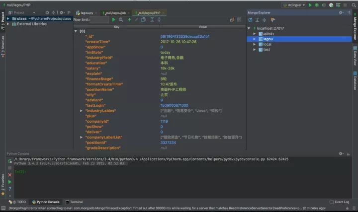 7、数据入库之MongoDB(案例二:爬取拉勾)