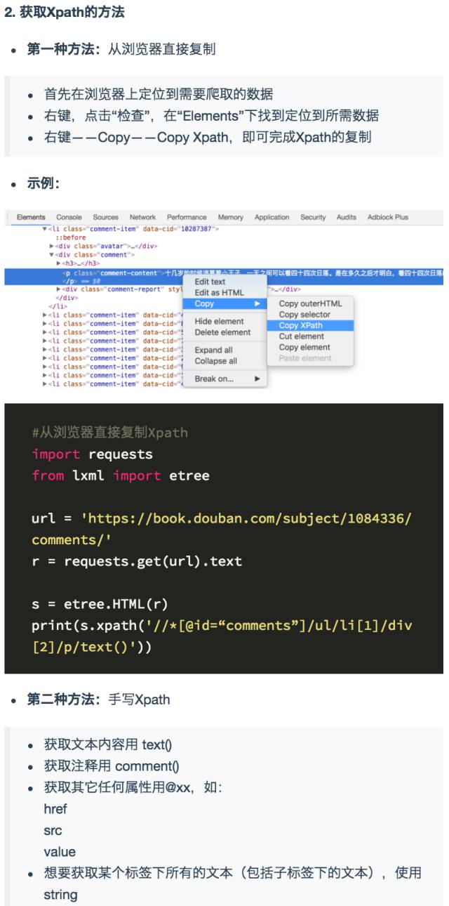 后来认识到 xpath 之后相见恨晚,这才是入门必备利器啊,直接Chrome复制就可以了,指哪打哪。即便是要自己写 xpath,以w3school上几页的 xpath 教程,一个小时也可以搞定了。