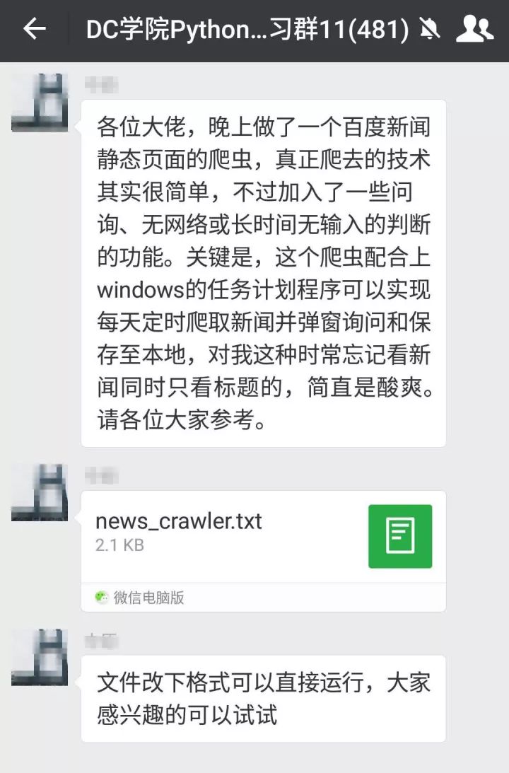 2. 在前面学习的同学中,很多已经能够写基础的分布式框架,有人爬取租房、电商商品、书籍、电影等数据进行了分析,有人做出了每天自动爬取新闻、天气的Demo,也有人爬到了大量的“妹子图”……