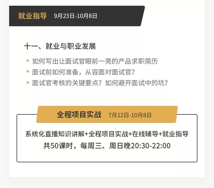 每周2次直播上课:周三、周日晚20:30-22:00,不耽误白天上班。错过直播还可以隔天观看回放。一共50课时,相当于再上了一次大学专业课。