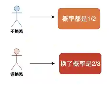 面对这个问题,很多人认为换或者不换选中汽车的概率都是1/2,还有一部分人认为应该换了之后的概率更大是2/3。