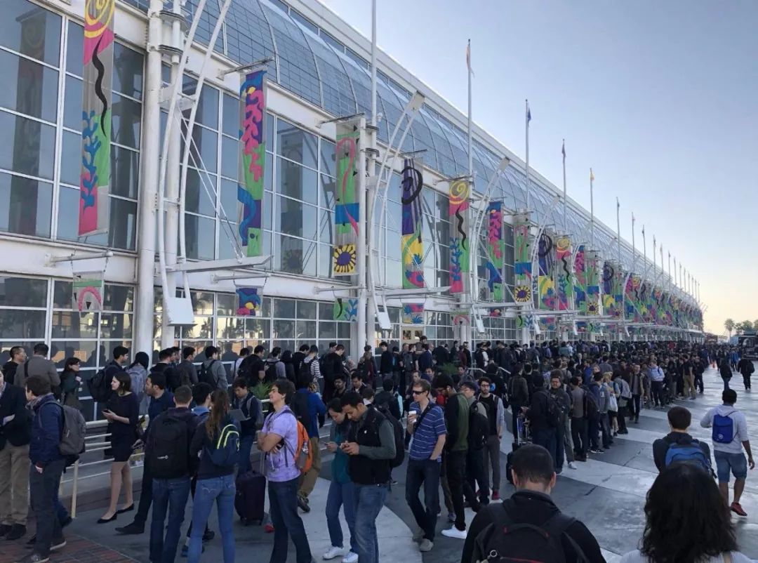 2017 年 12 月,NIPS 2017 在美国长滩会展中心门口的注册排队长龙。