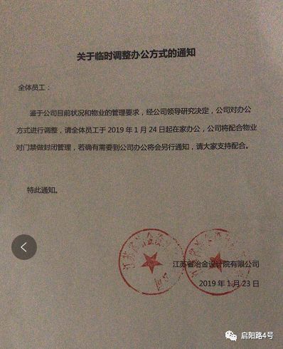 江苏院发布员工在家办公通知
