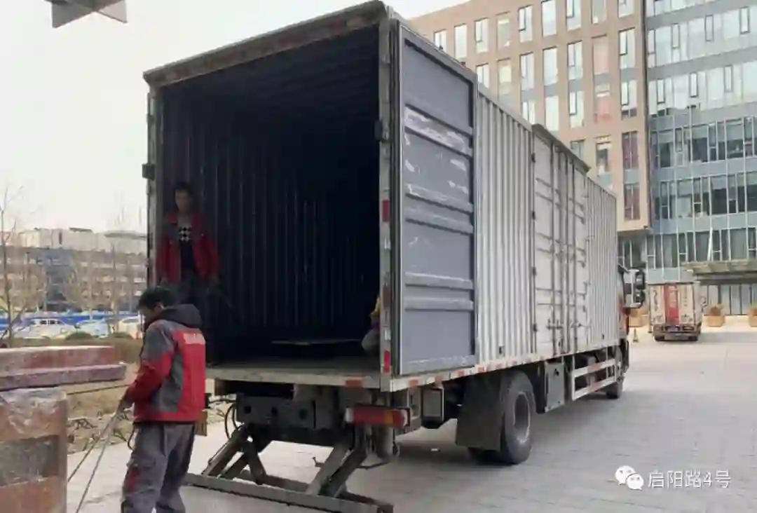神雾环保原位于北京朝阳区办公楼下,搬家公司正在打包装车|杨芳拍摄