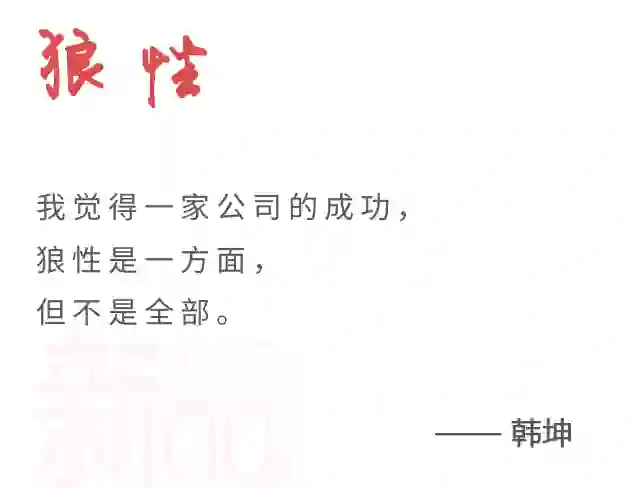 韩坤说:「我觉得一家公司的成功,狼性是一方面,但不是全部。」