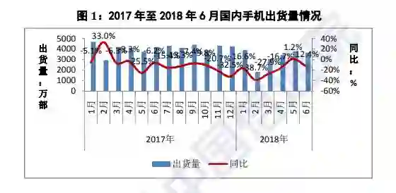 7月9日,中国信通院发布《2018年6月国内手机市场运行分析报告》。数据显示,2018年6月,国内手机市场出货量3661万部,同比下降12.4%;2018年1-6月,国内手机市场出货量1.96亿部,同比下降17.8%。