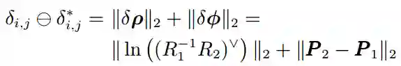 ② Burgard等提出了一种基于图模型的相对位姿计算方法,但该方法是基于二维空间中三自由度的运动,我们将之拓展至三维空间六自由度的运动。两个位姿之间的相对误差为