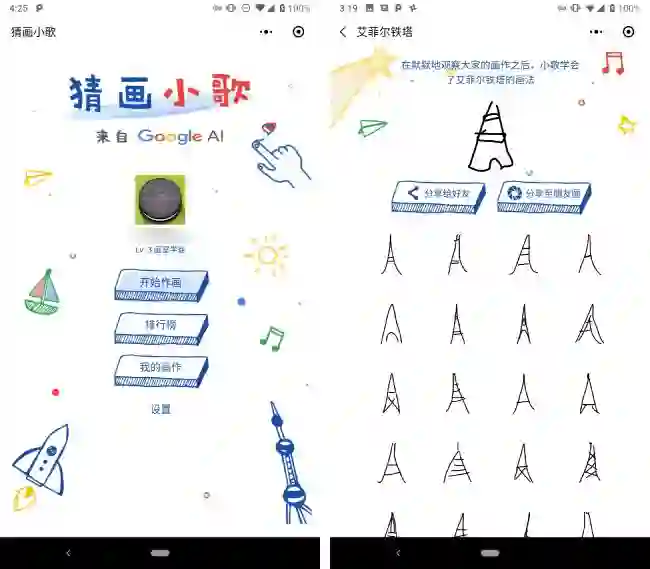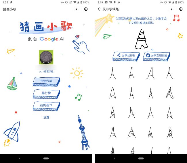 昨天谷歌在微信上架了一款小程序「猜画小歌」,利用 Google AI 的神经网络来和你玩一局「你画我猜」的小游戏。猜画小歌和原版 Quick Draw 以及 Auto Draw 相比还引入了等级和社交元素:等级越高,给定的词汇就越难用简笔画具体地描绘出来,AI 猜画的难度也就相应变大。