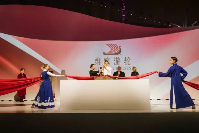3月8日当晚,在游轮停靠的码头上,举办了“维京太阳号”盛大的命名典礼。本次命名仪式以中国特色的“丝绸”为主题,旨在象征中国与挪威、东方与西方的文明交融之路。维京游轮公司成立于1997年,以丰富的内河航线而闻名。但有些目的地无法通过内河游轮抵达,为了满足游客探访世界更多角落的心愿,在2015年推出了覆盖全球的海洋航线,已拥有了4艘海洋游轮。“维京太阳号”则是最新下水的一艘。