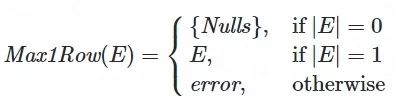 输出一个只有一行一列的结果表,这个标量值就是它的结果。如果结果为空(0 行),则输出一个 NULL。但是注意,超过 1 行结果是不被允许的,会产生一个运行时异常。