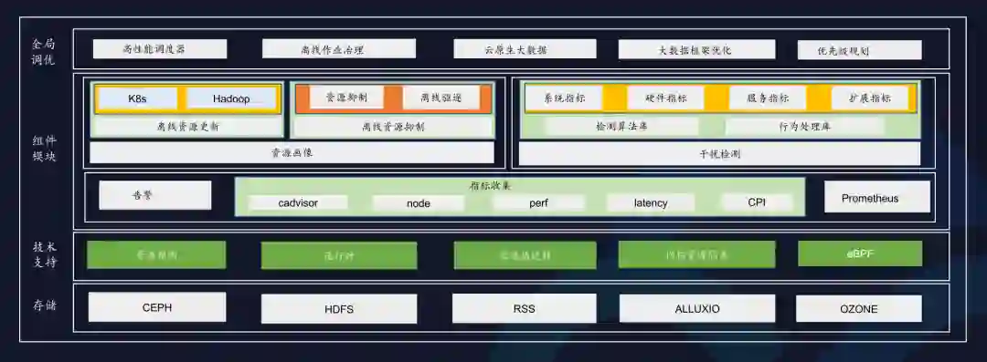 为了更好地保证在线服务质量,需要干扰检测与处理机制。该机制全方位实时检测在线是否受到干扰,并采取措施,如压制离线资源或驱逐离线任务,及时消除干扰。