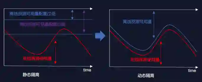为了更好地保护在线资源服务,大多时候我们只在波谷时期部署离线任务,而不是24小时混部。动态预测可以使离线资源随在线资源量的变化而变化,在不挤占在线资源的前提下,实现资源利用率最大化。