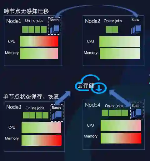 缺乏容器热迁移机制,离线作业在资源受压制时只能被驱逐。