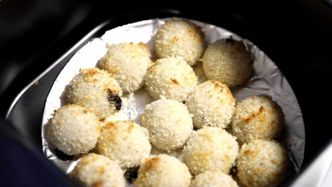 由于测评当天正好是元宵节,所以我们特地用空气炸锅尝试了一波炸汤圆(黑芝麻馅的)。在小红书上查了一些高赞攻略,发现做法超级简单: