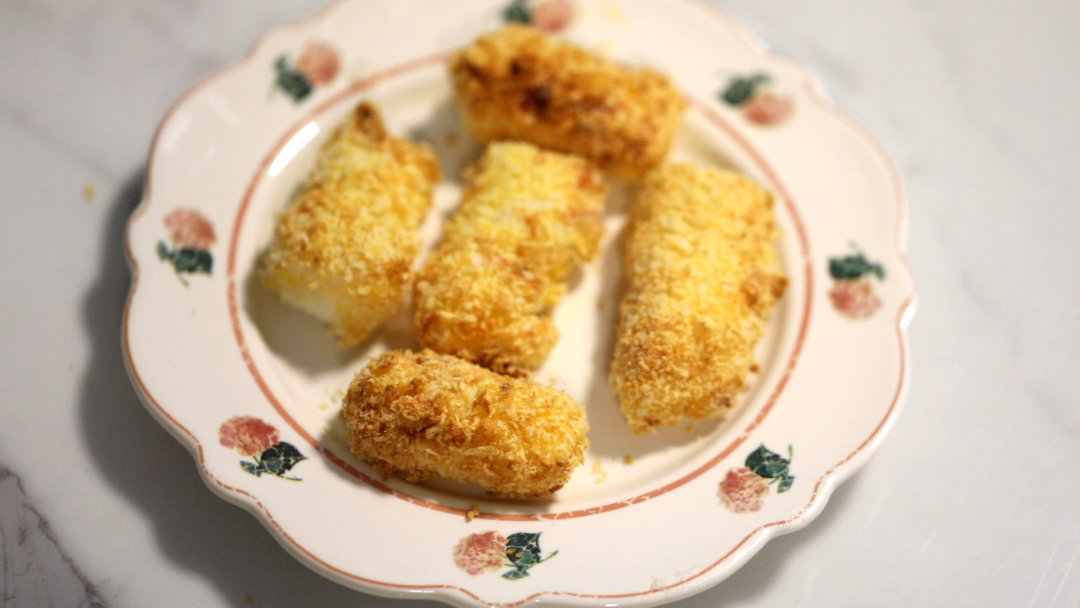 如果面包糠上不刷油的话,口感就会大打折扣(解决办法就是炸制前刷油)