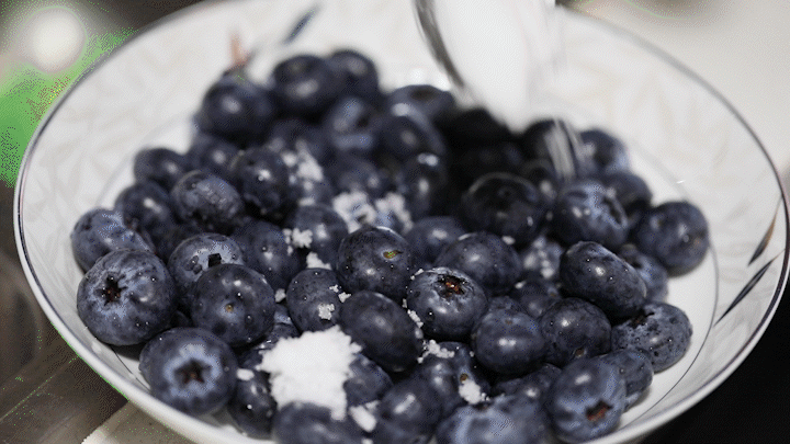,因为对于我们这些不经常下厨的人来说实在太不友好了。经过一番研究过后,我们最终的配料比是250克蓝莓+50克糖+半颗柠檬。