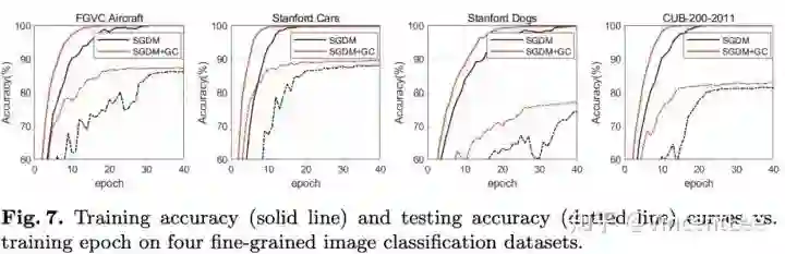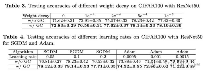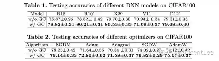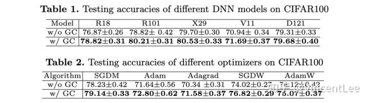 算法1和算法2分别展示了将GC嵌入到SGDM和Adam中,基本上不需要对原优化器算法进行修改,仅需加入一行梯度零均值化计算即可,大约仅需0.6sec。