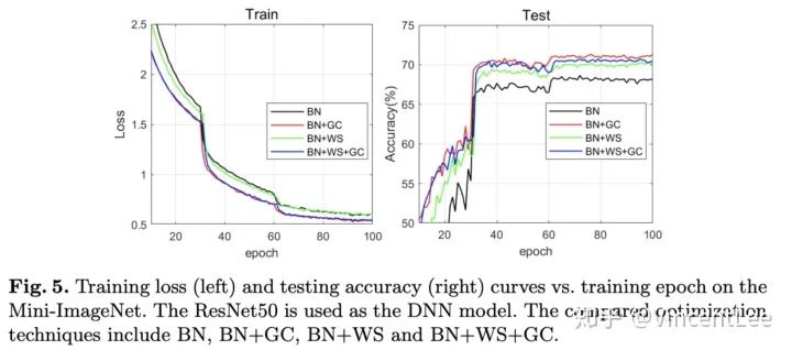 相关证明可以看原文附录,定理4.2表明GC比原函数有更好的Lipschitzness,更好的Lipschitzness意味着梯度更加稳定,优化过程也更加平滑,能够类似于BN和WS那样加速训练过程。