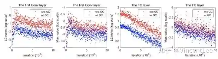 GC的另一个优点是防止梯度爆炸,使得训练更加稳定,作用原理类似于梯度裁剪。过大的梯度会导致损失严重震荡,难以收敛,而梯度裁剪能够抑制大梯度,使得训练更稳定、更快。