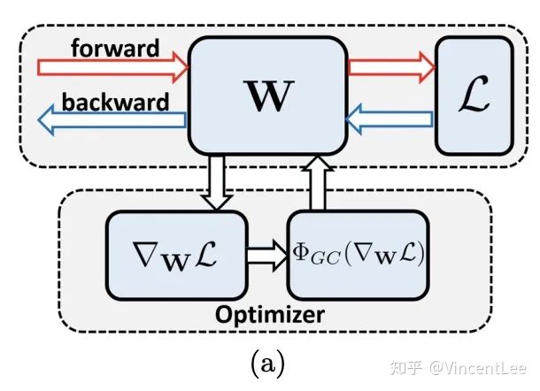 与在权值和特征值进行标准化方法不同,论文提出作用于权值梯度的高性能网络优化算法梯度中心化(GC, gradient centralization),能够加速网络训练,提高泛化能力以及兼容模型fine-tune。如图a所示,GC的思想很简单,零均值化梯度向量,能够轻松地嵌入各种优化器中。论文主要贡献如下: