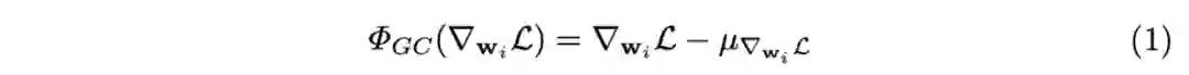 BN和WS使用Z-score标准化分别操作于特征值和权重,实际是间接地对权值的梯度进行约束,从而提高优化时损失函数的Lipschitz属性。受此启发,论文直接对梯度操作,首先尝试了Z-score标准化,但实验发现并没有提升训练的稳定性。之后,尝试计算梯度向量的均值,对梯度向量进行零均值化,实验发现能够有效地提高损失函数的Lipschitz属性,使网络训练更稳定、更具泛化能力,得到梯度中心化(GC)算法。