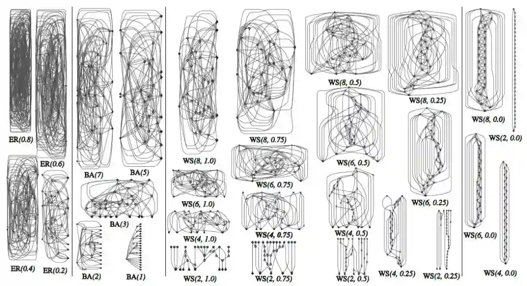 作者引入了三种随机图生成方法,即Erdos-Renyi(ER)、Barabasi-Albert(BA)和 Watts-Strogatz(WS)。这三个方法生成随机图的机制比较简单。