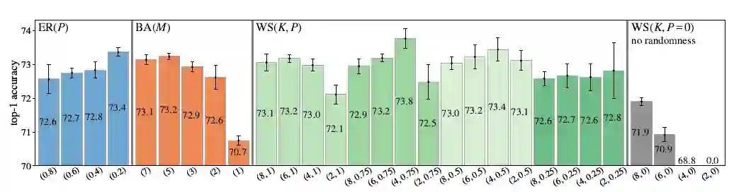 深度学习模型炼丹师一般手工精心设计网络中不同层之间的连接方式,如CNN的convolution,RNN的recurrent,ResNets的x+F(x),以及DenseNets的[x, F(x)]等。自动化机器学习/深度学习的研究者则主要关注在巨大的网络模型空间中如何高效地搜索出较好的神经网络,如早期研究人员一般使用random search/gird search,现在演变出reinforcement learning, gradient-based, weight-sharing,以及evolutionary等方法。论文作者引入了一种网络模型空间的构造方法,即图论中的random graph,之后用grid search搜索出较好的神经网络子集,并在ImageNet的1000-class分类任务上进行验证。