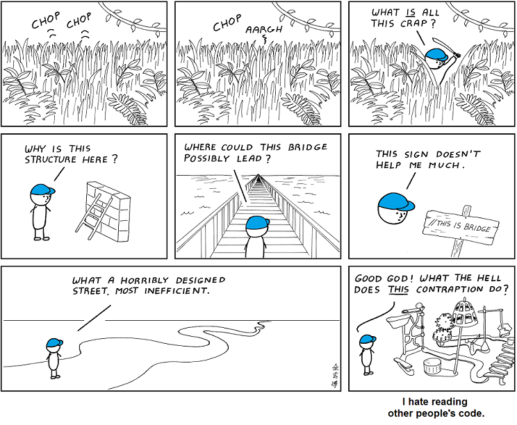 不论前一位工程师的代码多么杂乱或思虑不够周全,你仍然需要仔细阅读所有的代码。毕竟,这是你的工作。何况那位工程师可能就是一年前的你。