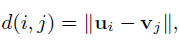 本文使用ui与vi分别作为用户与物品的特征描述。定义用户ui与vi之前距离,使用的是欧式距离: