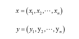 常见的相似性度量方法主要有: 欧氏距离、曼哈顿距离、切比雪夫距离、闵可夫斯基距离、马氏距离、夹角余弦、信息熵等。相似性度量描述两个对象之间的相似程度,假设特征向量x和y分别表示为: