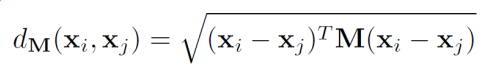 由于人的面部识别、姿态识别、步态识别甚至行为识别等特征的维度之间往往具有很强的相关性,因此度量学习的主流就是马氏距离学习。欧氏距离源自欧式空间中两个点之间的距离公式,其计算公式为(语义信息):