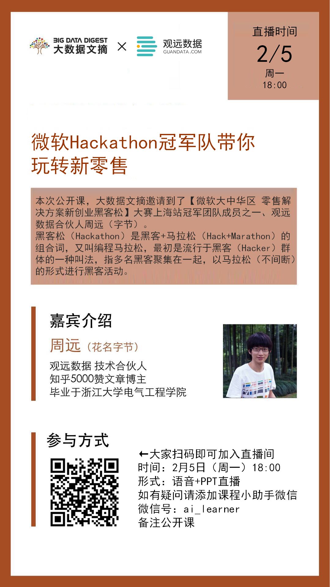 今晚大数据文摘邀请到了【微软大中华区 零售解决方案新创业黑客松】大赛上海站冠军团队成员之一、观远数据合伙人周远(字节)。他将从赛题背景、数据探索、特征工程、模型调优等方面,为大家带来观远团队在刚结束的黑客松大赛上的第一手经验:
