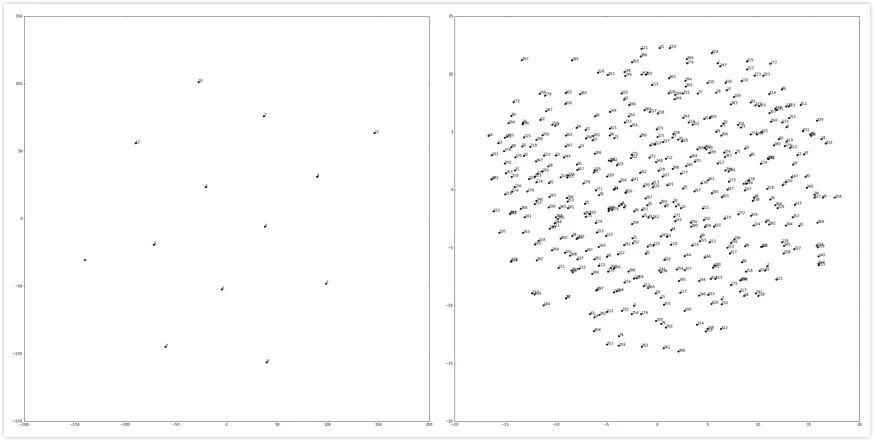 在此基础上,我们发现了一种更加高效地实现从高维稀疏特征来自动构建特征向量空间的embedding方法,其原理类似于著名的Word2vec在自然语言处理领域的应用。针对构建好的特征,用t-SNE进行降维处理,得到了各个月份,各个门店,各个商品的相关度。
