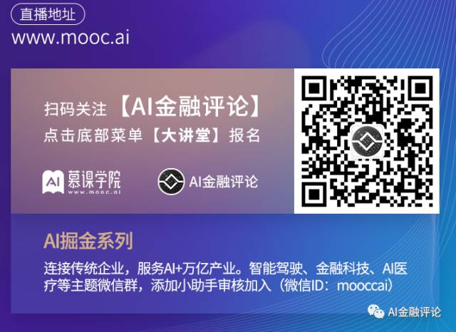 关注雷锋网旗下公众号“AI金融评论”,点击底部菜单“大讲堂”报名,收看直播。(直播观看免费,回看录播收费)