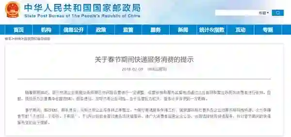 春节期间,邮政EMS、顺丰速运、京邦达等企业将保持正常营业。为做好寄递服务保障工作,国家邮政局已要求各企业统筹安排网络资源,全力保障春节前“不休网、不拒收、不积压”,于2月22日前全面恢复各项快递服务。请广大消费者留意企业公告,合理选择使用快递服务,并对春节期间的快递服务变化给予理解。
