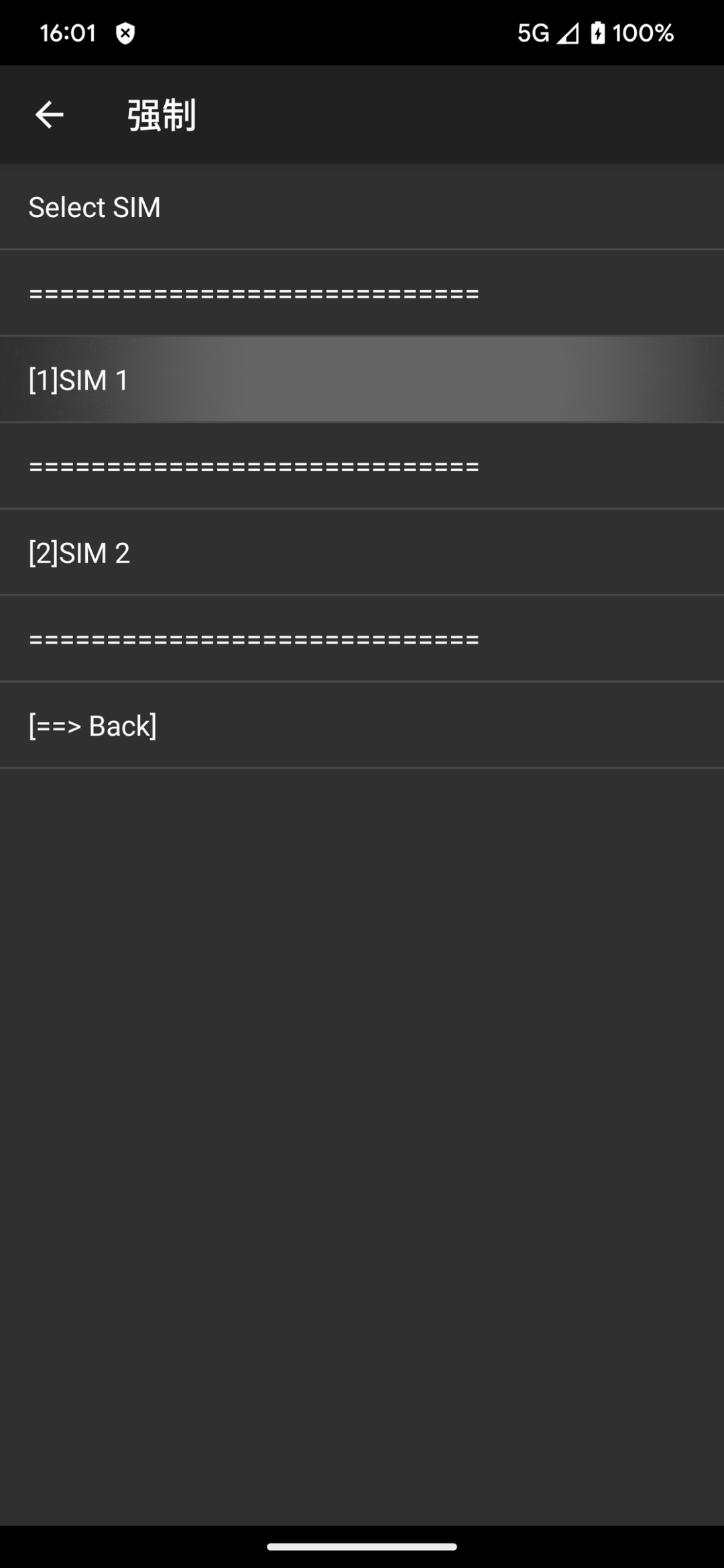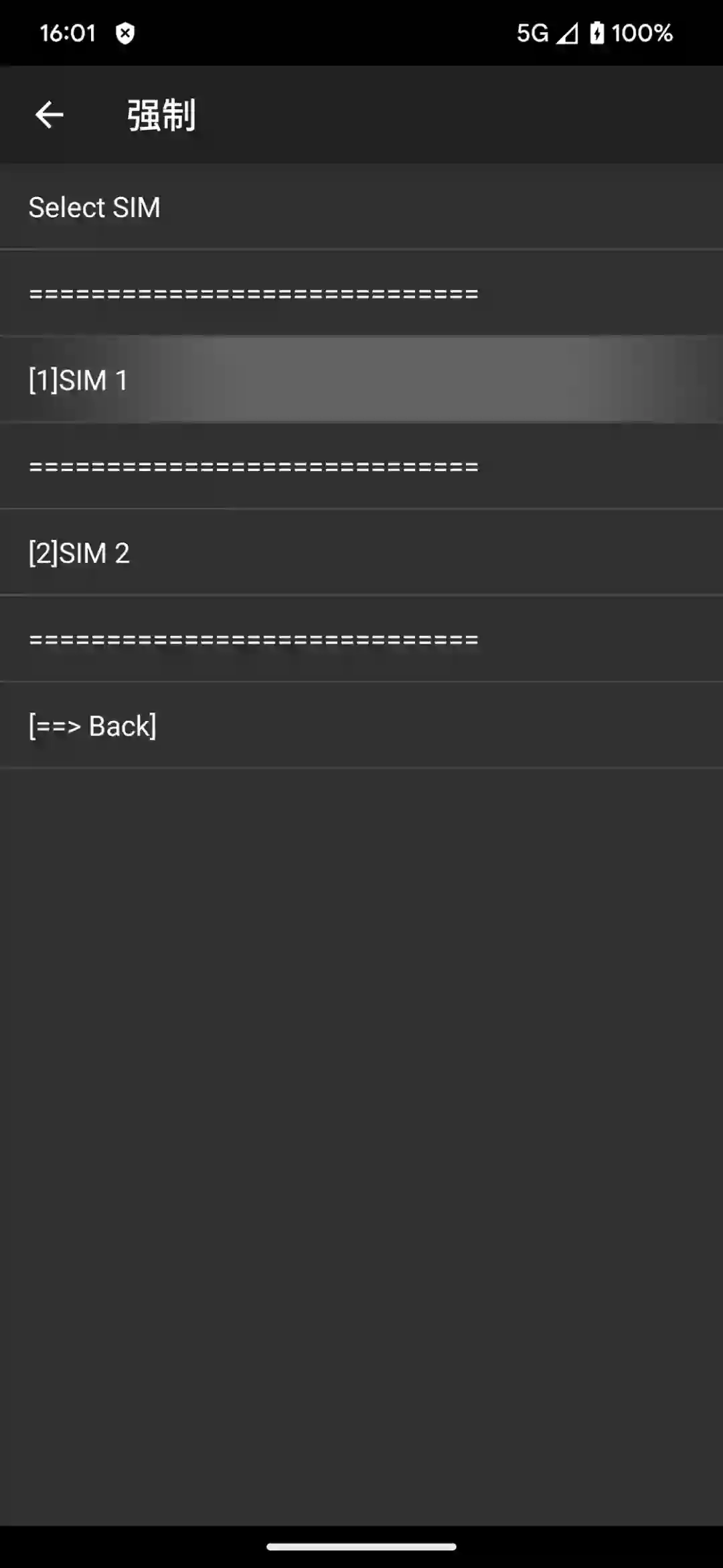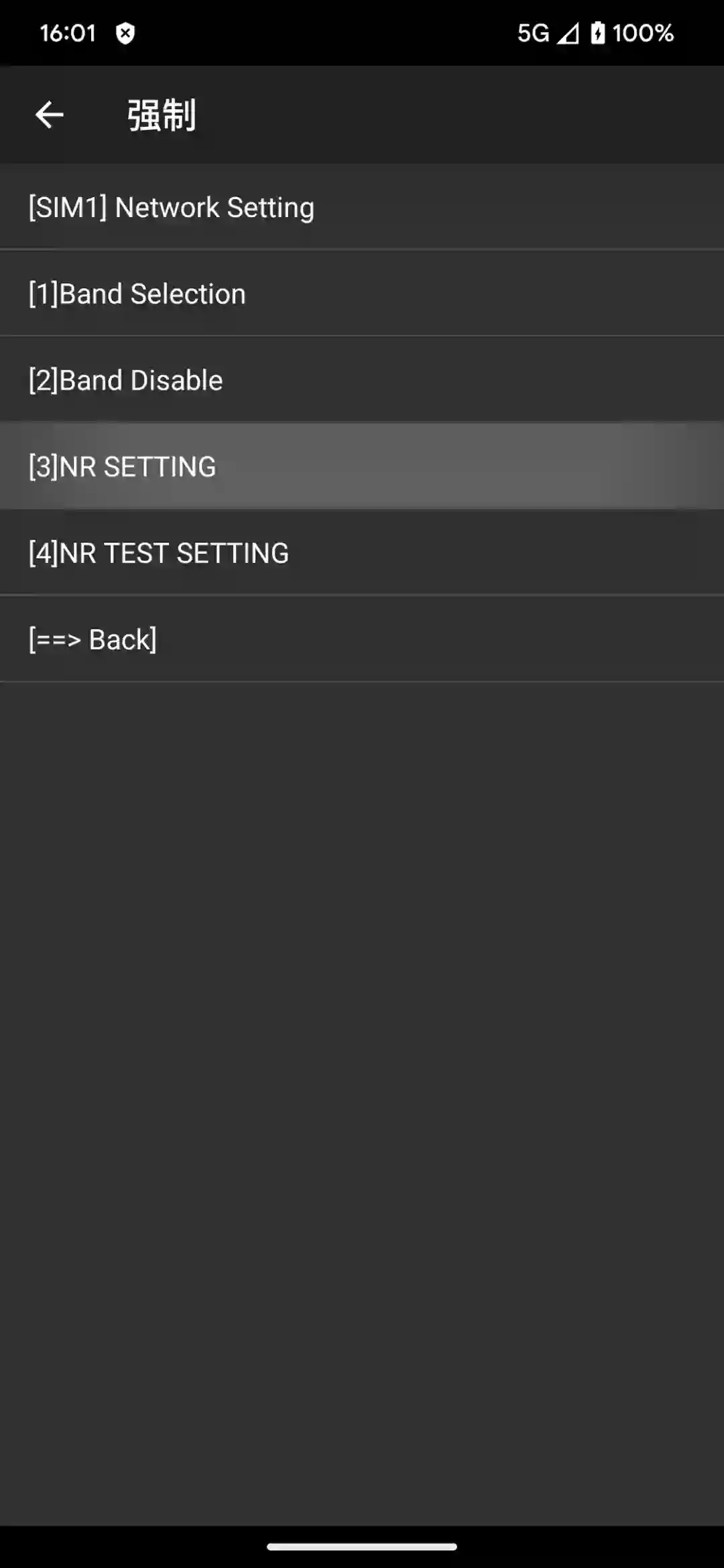点击主界面右上角的三点菜单并选择「强制功能」,然后选择 SIM 1 > NR SETTING;