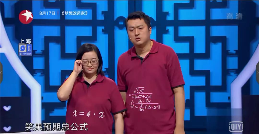 他们把工程学里的有限元理论公式全部类比到了相声上,做了个“笑果预期总公式”。自称能通过他们衣服上这些复杂的运算公式,创作出最好笑的相声。