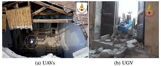 图1.2016年阿马特里切/意大利地震后,TRADR项目中使用的无人机与地面机器人。