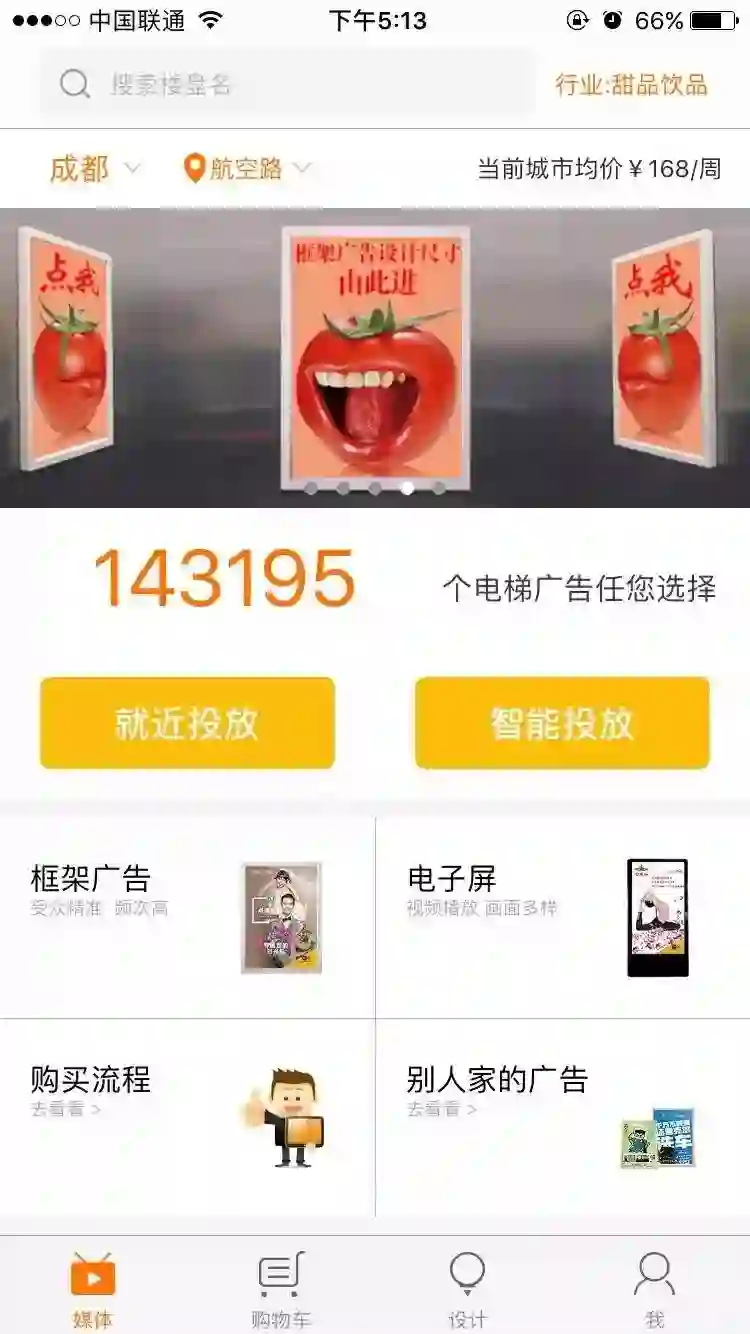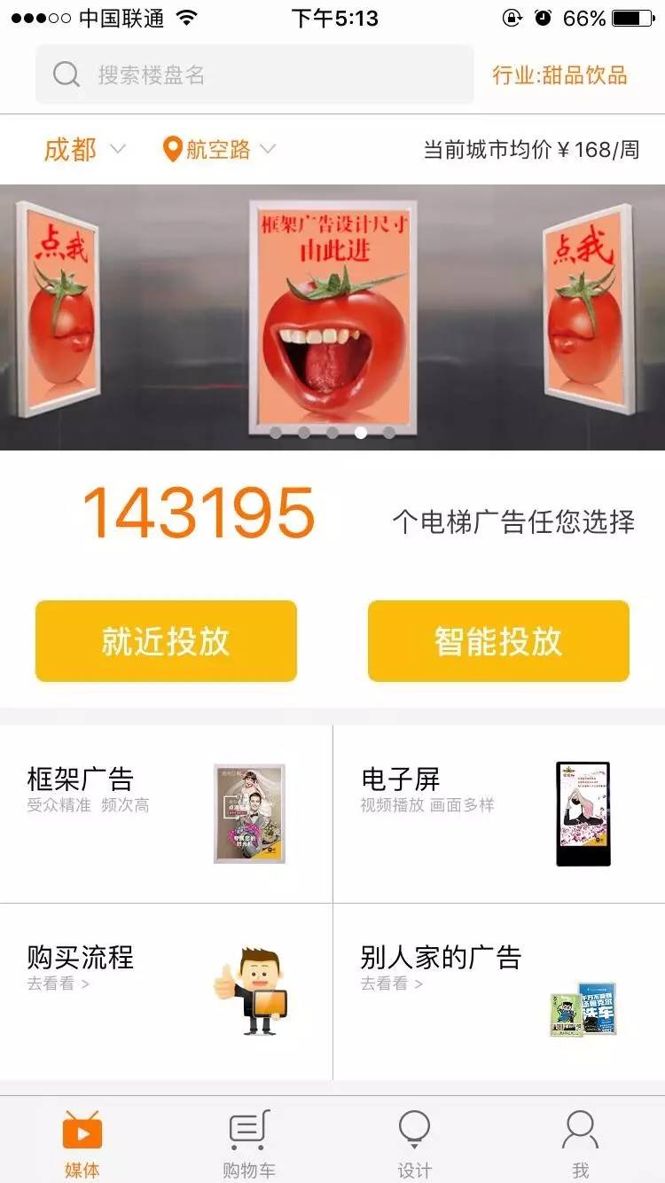 在传不的APP上,用户需要先选择所在的城市和要发布的广告行业,随后就可以根据地理位置看到附近可供选择的广告位,这些广告位分布在各个小区的电梯间中,用户可以选择框架广告或者电子屏广告,投放周期按周计算,用户自行下单预订之后会有客服来审核广告内容,24小时之内就可以完成支付。在提交广告材料时如果用户有广告文案的设计需求,也可以直接在传不的APP上直接购买。