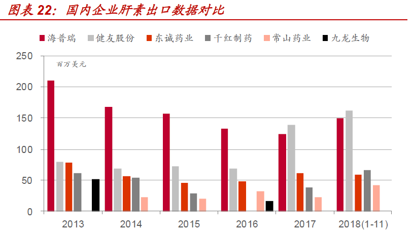 海普瑞抓住“百特”事件机遇,跃升为国内肝素龙头企业,健友股份在新一轮肝素周期中后来居上,2017、2018年出口量持续超越海普瑞。