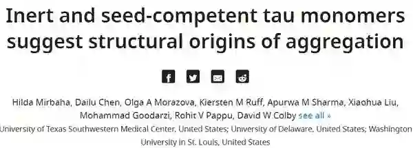 7月10日,《eLife》期刊以“Inert and seed-competent tau monomers suggest structural origins of aggregation”为题发表了这一项突破性成果。来自于德克萨斯大学西南医学中心的O'Donnell大脑研究所的科学家们解析了Tau蛋白在形成更大聚合体之前的“变形记”。这一发现为AD提供了一种新的策略——在Tau蛋白变坏之前将其稳定下来,从而及早诊疗AD。
