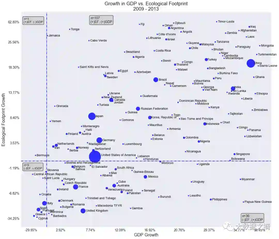 全球足迹网(Global Footprint Network)的国家足迹账户 (NFAs) 记录了自1961年起生态资源使用情况以及各国的资源承载力。该组织在data.world上发布了2017年版的数据,对其进行分析后,可以帮助我们更好的了解经济发展与自然资源消耗之间的联系。