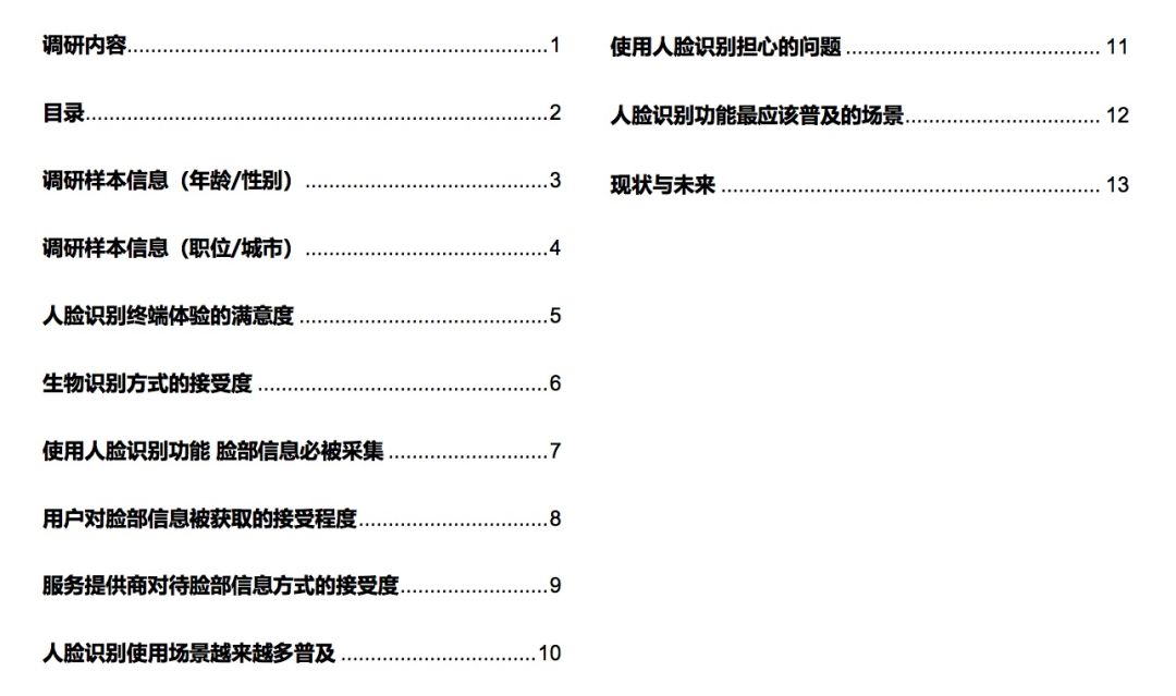 此份调查报告内容涵盖人脸识别技术的应用场景、用户感受等,以及人脸数据的使用方式,这些都是产品设计和开发过程应该倍加重视的问题。