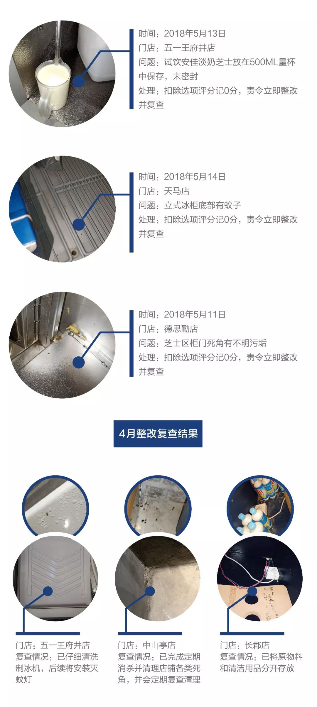 6、高度重视门店上报的食安相关问题,一小时内通报运营部,非不可逆问题24小时内提出解决方案,门店响应解决。